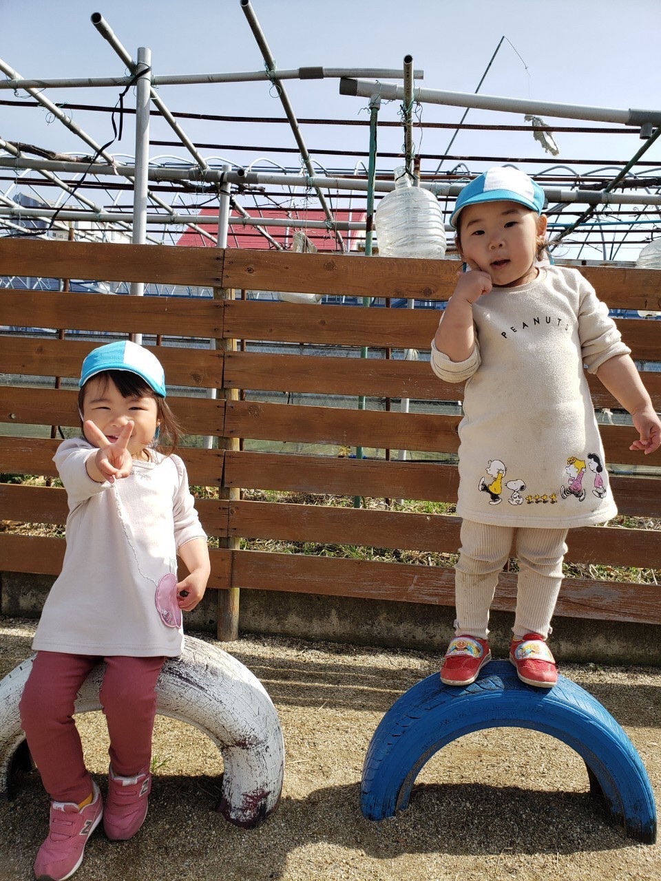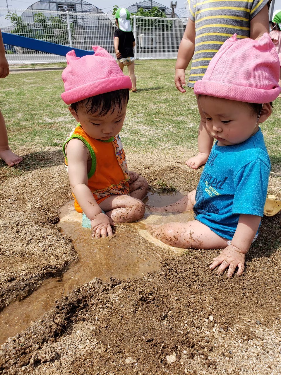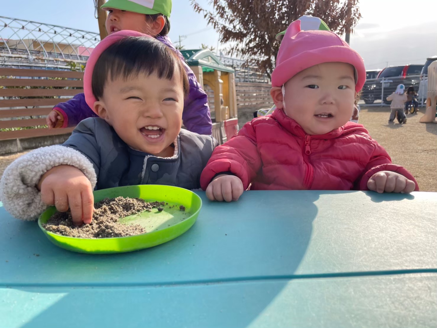 まだ歩けない0歳児さんも外であそぶのは大好きです。 |