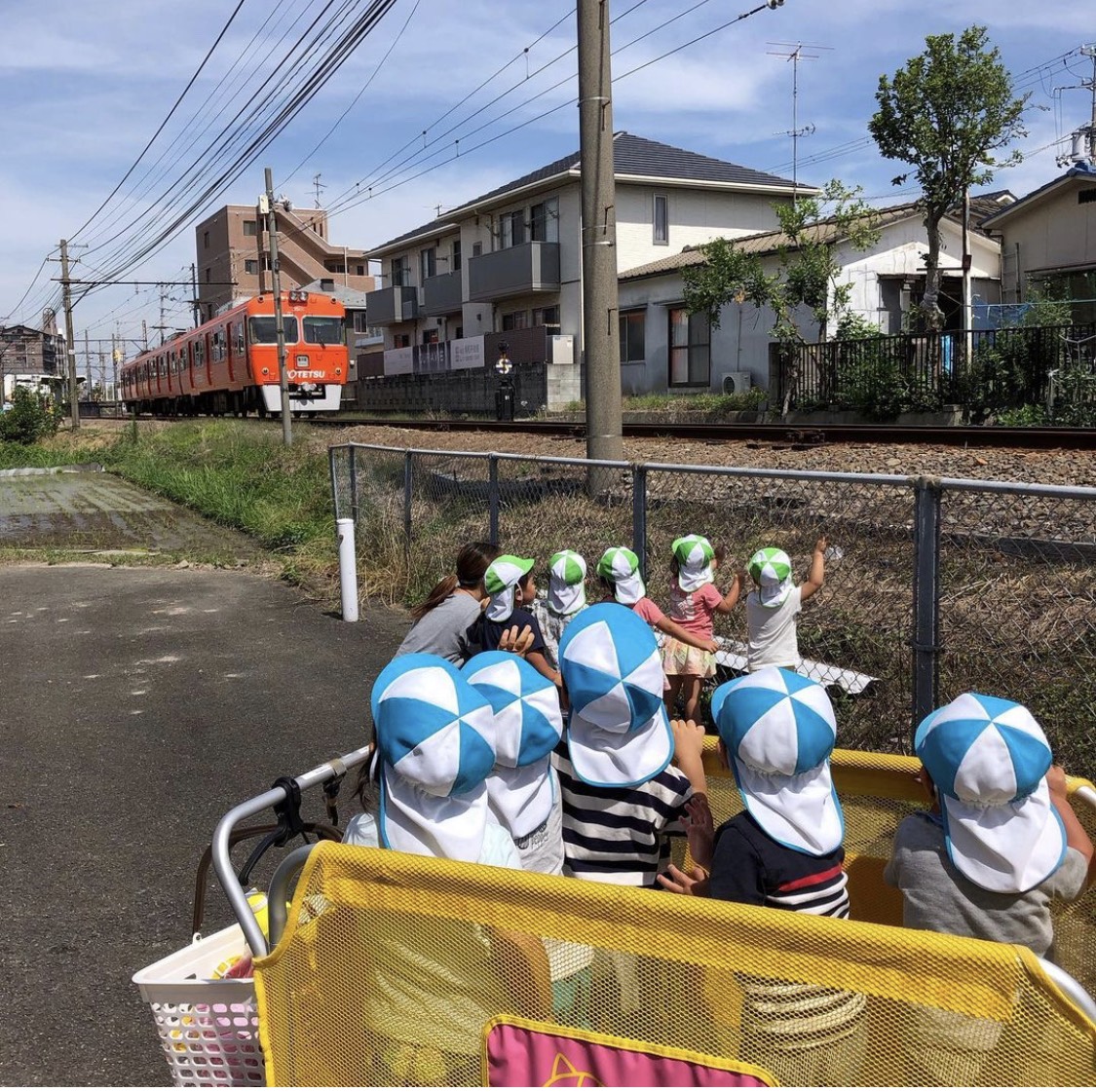 電車を見にお散歩へ・・・。「電車さんおーい!!」 |