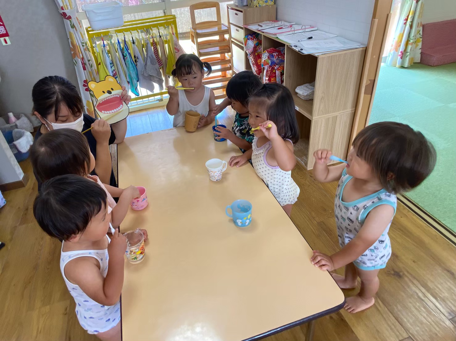 ごはんを食べたらくまさんと一緒に歯みがきタイム。 |