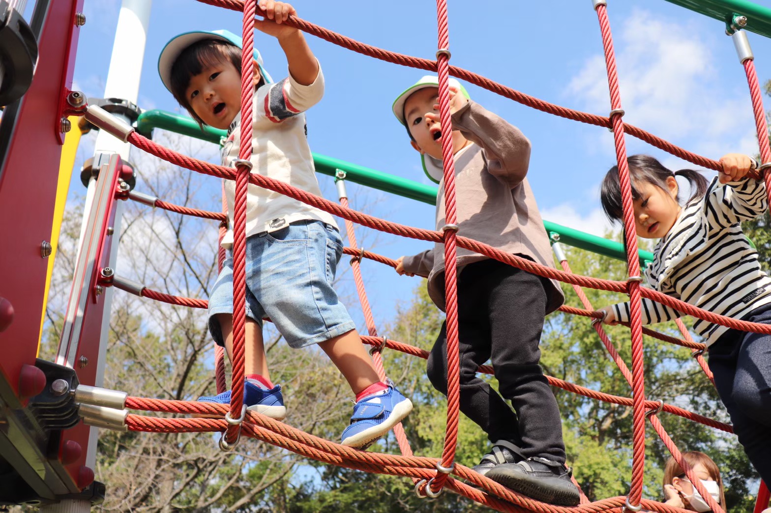 秋の遠足ではちょっと遠い所の公園へ・・・。高度な遊具にもどんどんチャレンジ!! |
